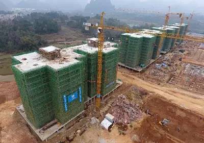 这是正在施工建设中的广西大化瑶族自治县拿银易地移民搬迁安置区(2月16日摄)。目前,广西大化瑶族自治县易地移民搬迁工程25个项目全部开工建设,争取贫困群众早日搬迁住上新住房。新华社记者陆波岸摄
