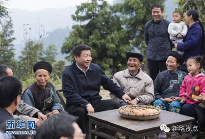 习近平在湘西土家族苗族自治州花垣县排碧乡十八洞村同村干部和村民座谈。 新华社记者 王晔 摄